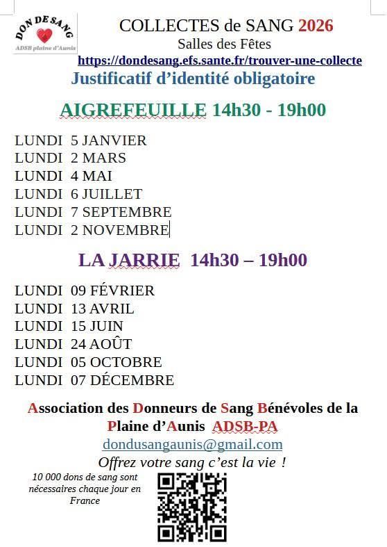Écrit le 4 janvier 2026. Publié dans Evènements à venir Don du sang 2026 Vues: 208 Imprimer E-mail Précédent Suivant