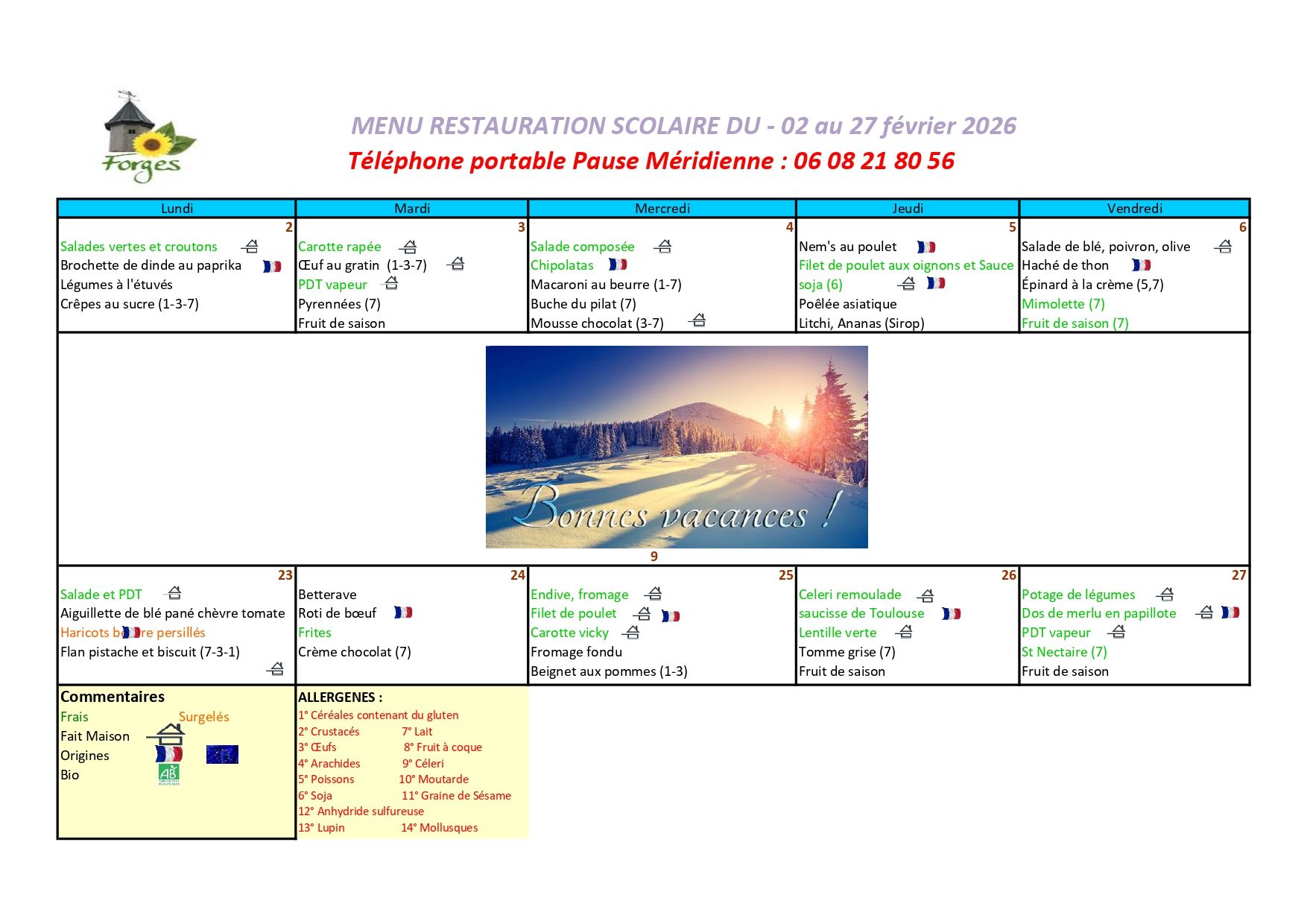 Écrit le 27 mai 2024. Publié dans Menu - Cantine de l'école Menu de la restauration scolaire février Agrandir Vues: 42 Imprimer E-mail Précédent